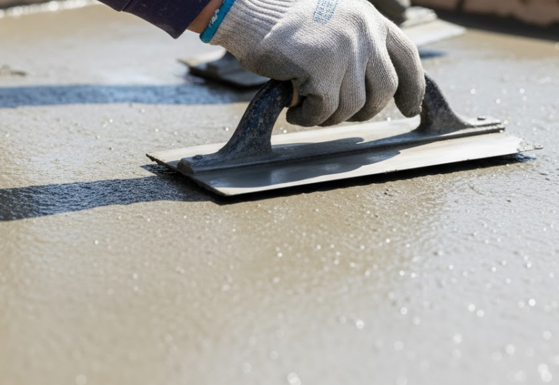- コンクリート打設:生コンクリートを型枠に流し込み、平らにならす作業。
